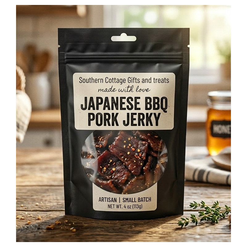 Japanese BBQ Pork Jerky combines sweet soy, ginger, and traditional Japanese barbecue seasoning for a balanced glaze with deep umami character.